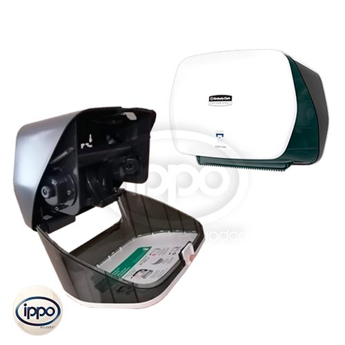 Dispensador de toalla de manos Scott Basic, fabricado en ABS (tapa y lateral). Gracias a su sistema de corte, permite que el usuario solo toque la toalla que va a usar. Adicional, cuenta con diseño práctico y compacto para espacios pequeños.